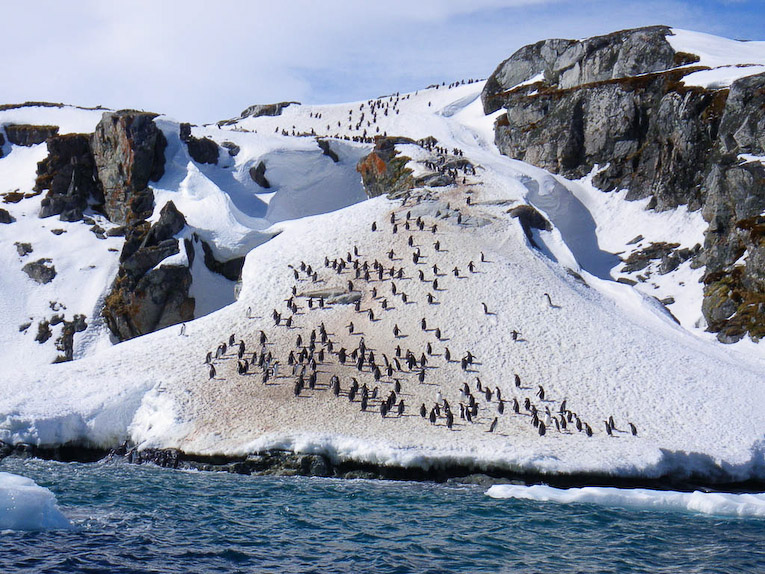 (cue up Morgan Freeman voice...) "In November, the penguins will march uphill hundreds of feet to find the perfect spot to fornicate and raise their young."