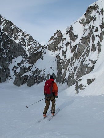 Pete heading into the Engine Cover Basin exit couloir. This 3,500' gully is like traveling through a powder filled time machine.
