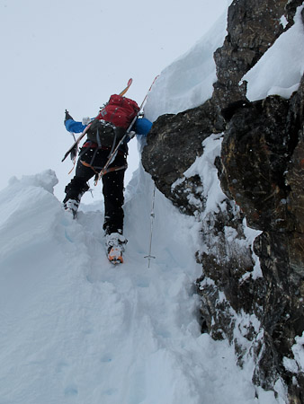 Busting through a cornice in Thompson Pass.