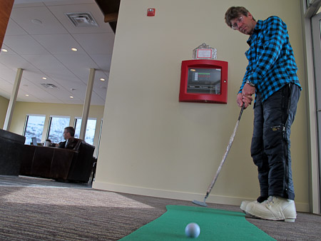 Putting the Tsania lodge with a bull pizzle putter. It didn't do much for my game.