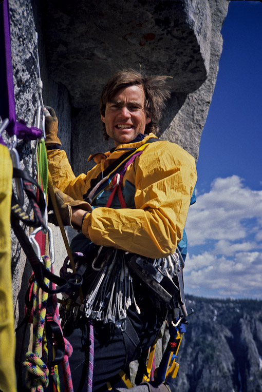 I think this was on Tribal Rite or Sunkist on El Cap in Yosemite Valley. Although I was capable of leading some of the easier pitches on these big routes, Alex could do them three times as fast, haul, eat and fix the next four pieces in the same time. I quickly learned to swallow my leading pride and just try to keep The Fiend fed with plenty of lead rope and smooth belays.