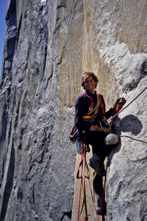Alex on Sunkist - El Cap, Yosemite Valley. This was one of many difficult aid pitches where he said "OK, get comfortable because this might take a few hours." 45 minutes later, in a blaze of hooks, heads and high steps, he'd call down "Off belay! Ready to haul. Hauling!'