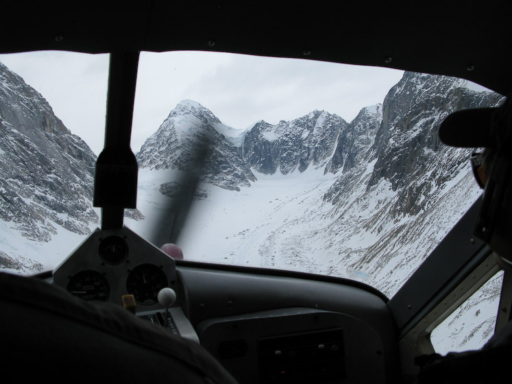 Coming into the head of the Revelation glacier. We landed in this cirque and set up Camp One right by the plane's ski tracks.