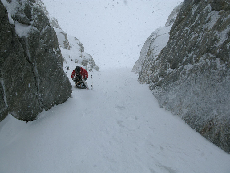 Courtney getting ready to ski down after an aborted attempt on a couloir.