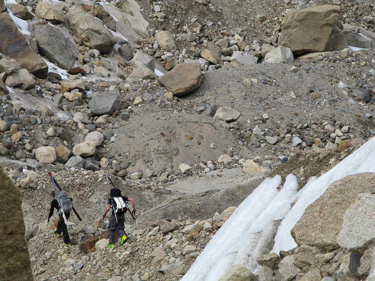 Let the stumbling begin - Court and Noah near the beginning of the 11 mile ski/walk out of the Revelation Glacier and back to Rob Jone's cabin.