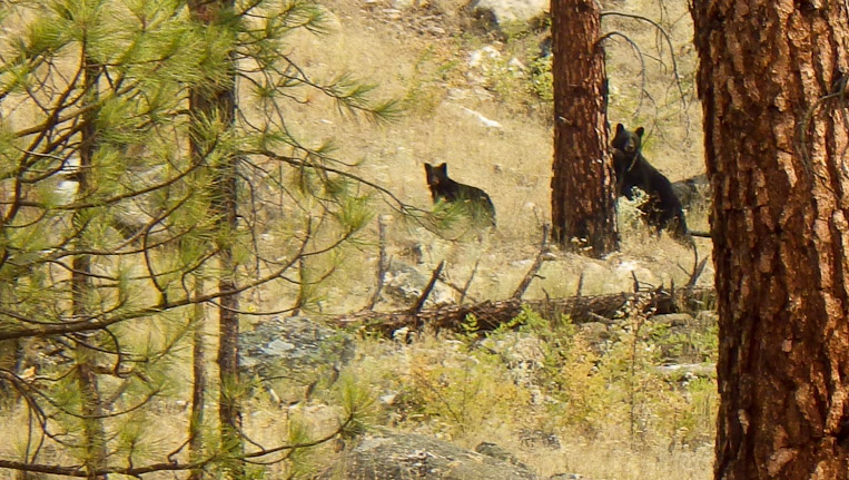 The reason we were hanging our food in the previous photo - a sow bear and two cubs (only one is visible). Beautiful creatures!