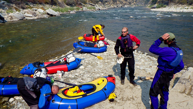 The confluence of Big Creek (left) and the Middle Fork of the Salmon (right).