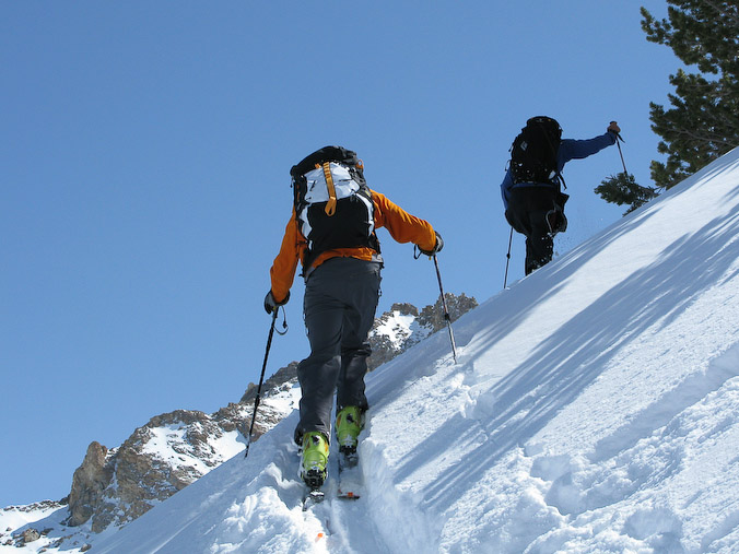Jay Beyer and Noah Howell (left) punching out a skin track.