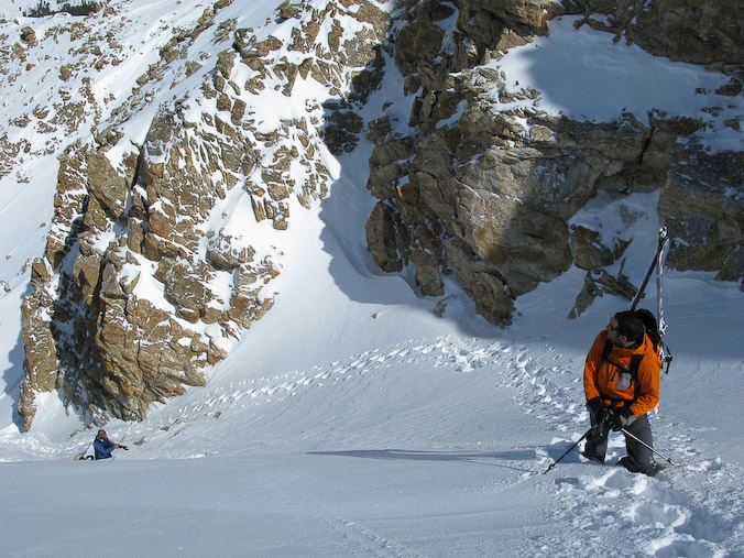 Noah Howell contemplates the universe from a nice couloir.
