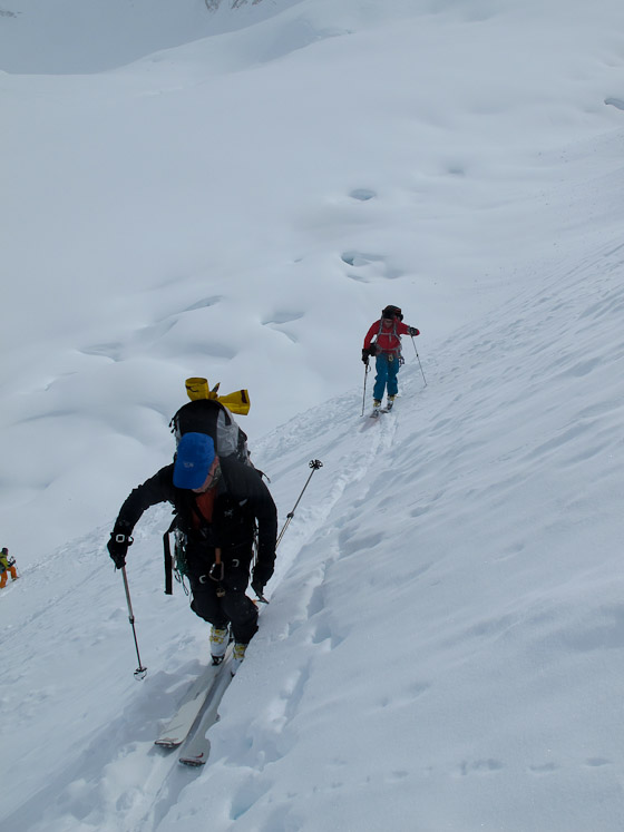 Skinning up a north-facing chute which we later backed off due to untrustworthy avalanche conditions.