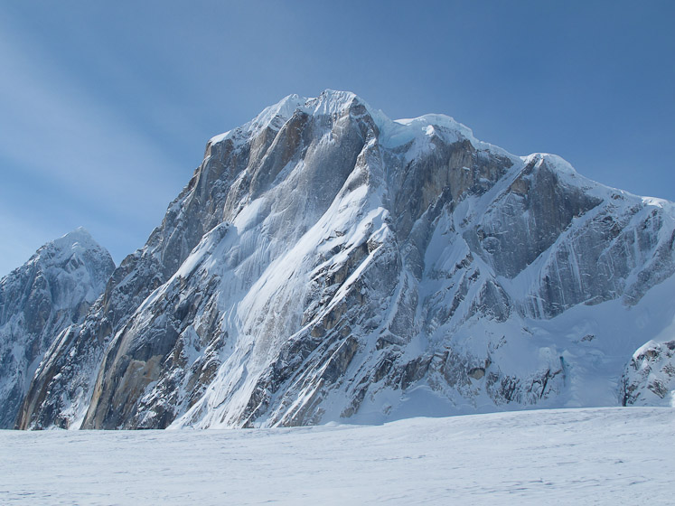 The west (NW?) face of Mt. Dickey. With 4,500' of vertical relief, this is one of the most beautiful and daunting alpine faces I've ever seen. But, unlike Huntington, there are actually a few conceivable climbing lines on it.