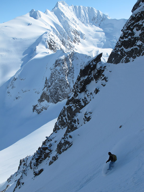 Ian dropping into a 45 degree field of recrystalized powder.