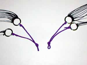 f) Once they are all tied up, tie the rings together with the 2mm line, measure the middle, then tie an over-hand knot in the center. This is what you will girth hitch the control lines to. |